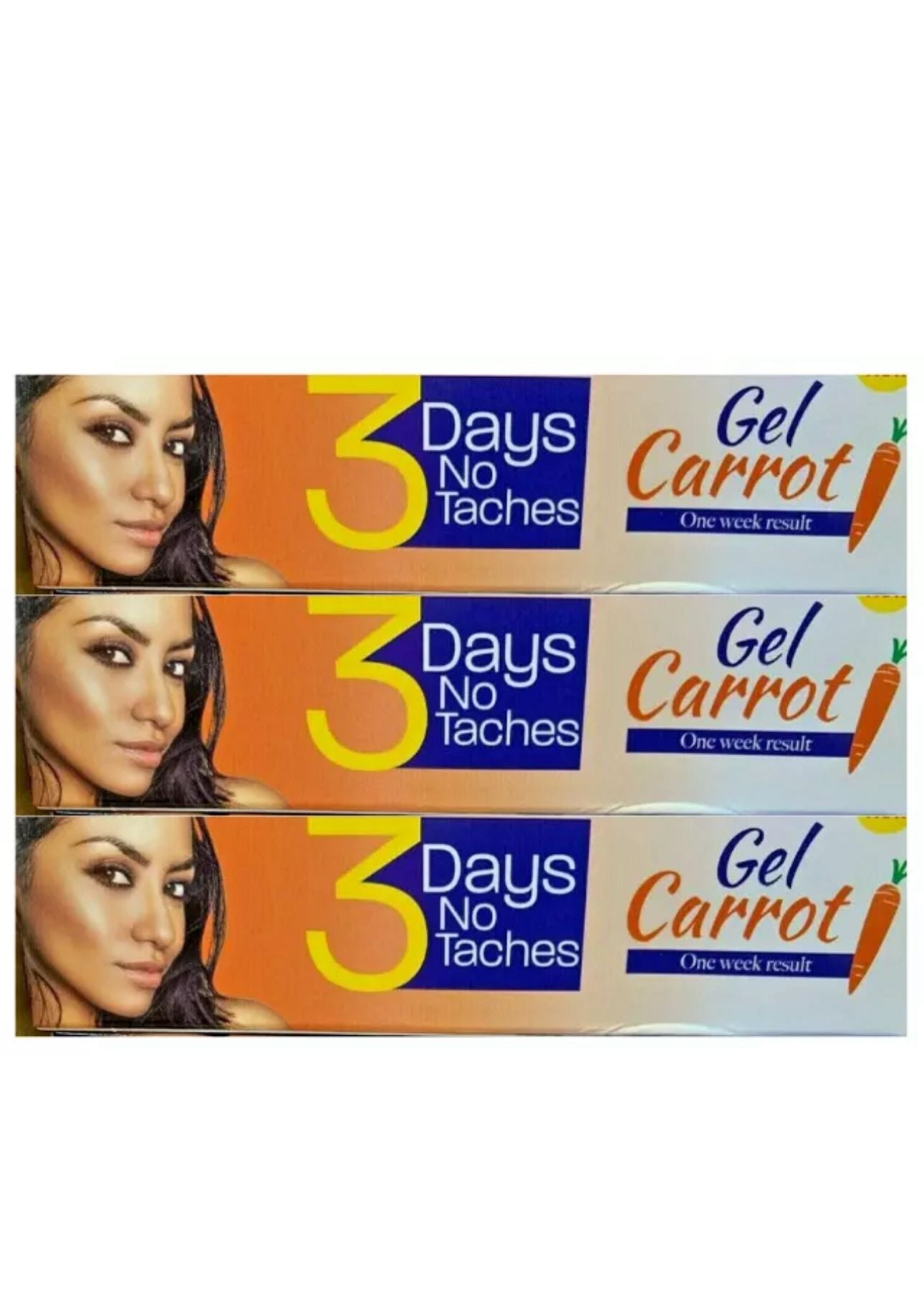 Say goodbye to dark spots and uneven skin tone with 3 Days No Taches Carrot Gel. Formulated with powerful carrot extract, this gel works fast to brighten your complexion, fade blemishes, and give your skin a healthy glow — all in just one week.